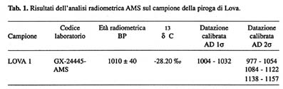 I risultati delle analisi radiometriche condotte sulla piroga di Lova illustrano le notevoli potenzialità delle datazioni radiometriche AMS, anche per tempi a noi relativamente vicini, soprattutto nel caso dello studio di reperti di notevole interesse documentario di cui si debba in ogni caso salvaguardare l'integrità.