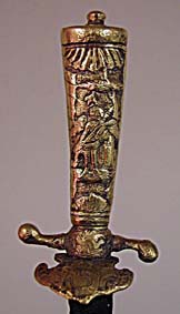La lama e l'elsa sono lavorate e decorate da disegni e incisioni che la caratterizzano come arma utilizzata per la guerriglia o per equipaggiare la scorta di signori durante le battute di caccia.