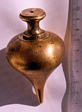 Misura di altezza circa 10 cm , presenta un foro sulla testa circolare in alto e pesa (caso strano) esattamente il doppio del pundus romano ossia 653 gr.